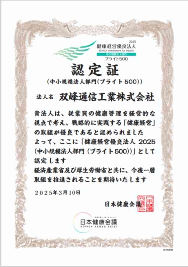 | ・健康経営優良法人2025 ブライト500認定取得 | New 2025.3.10 |
