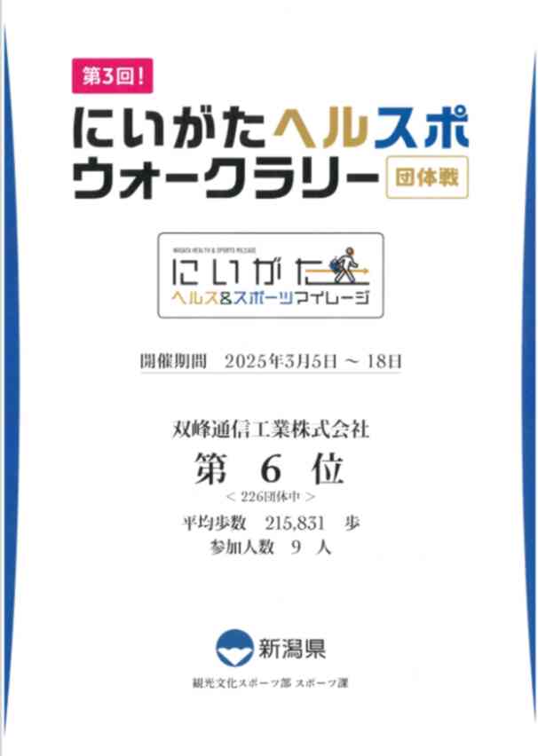 < 2025 にいがたヘルスポウォークラリー団体 第6位>